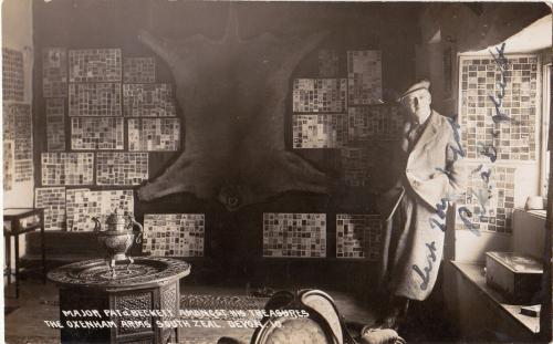 Major Pat a'Beckett - 1919 - Nephew of Lord Kitchener of Khartoum and owner of The Oxenham Arms. Photographed in the Haytor Room at The Oxenham Arms with his " Worlds Largest Collection of Matchbox Covers"