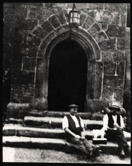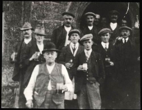 The men of The Oxenham Arms South Zeal 1921 - Photograph in the hotel front entrance