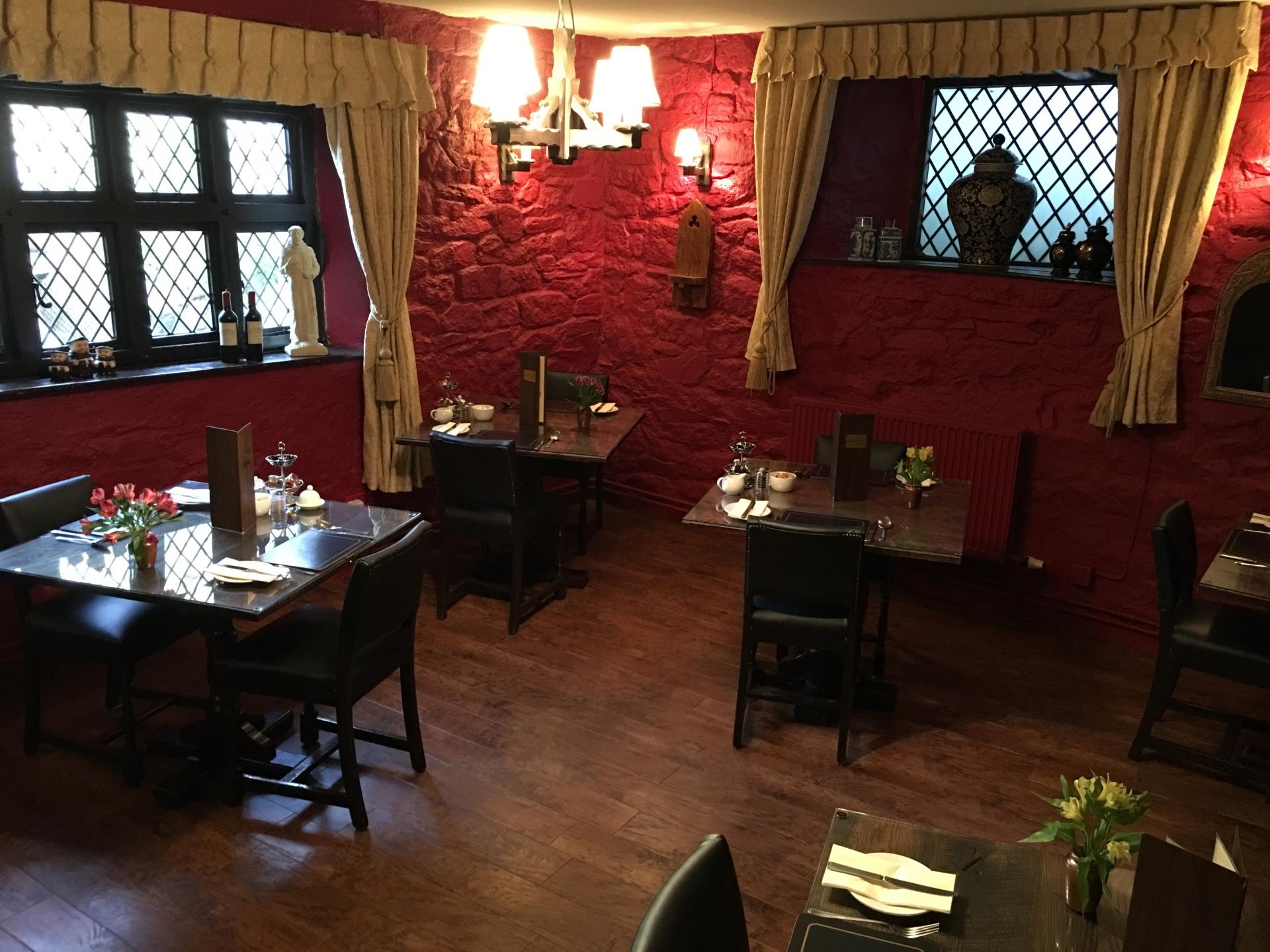 Breakfast is served in The Monastery Restaurant at The Oxenham Arms Hotel.