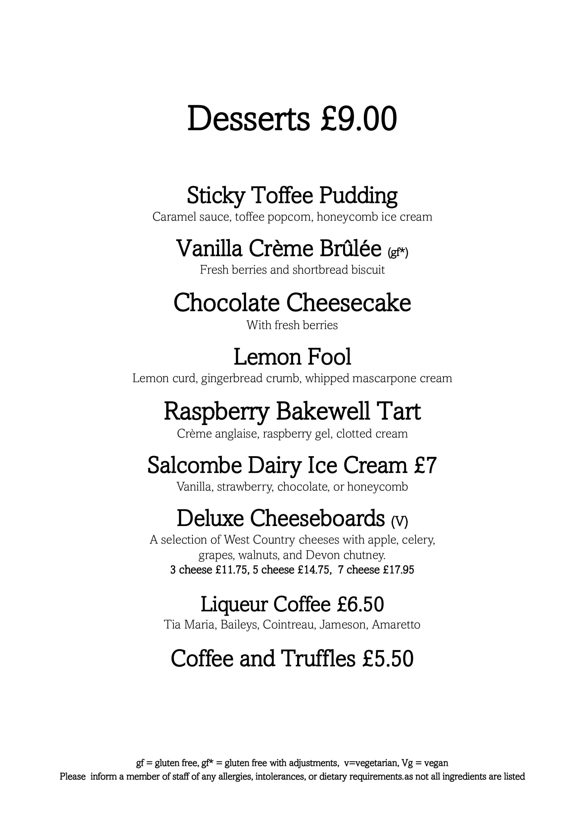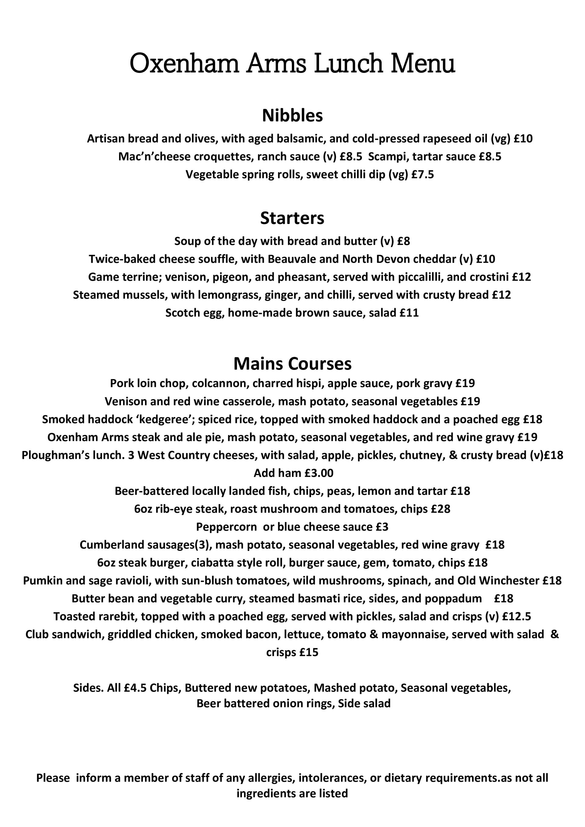 The Oxenham Arms Hotel AA Rosette Lunch Menu